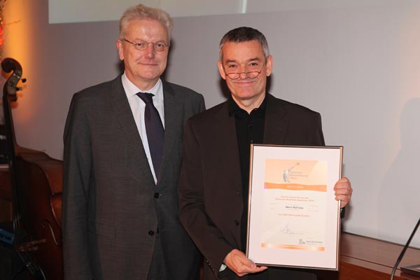 Ralf Isau ist Botschafter für den Deutschen Weiterbildungspreis (DWP). Friedrich Werner, der stellvertretende Leiter der Jury, überreichte dem Schriftsteller die Ernennungsurkunde im Essener Haus der Technik anlässlich der Gala zur Vergabe des DWP 2012.